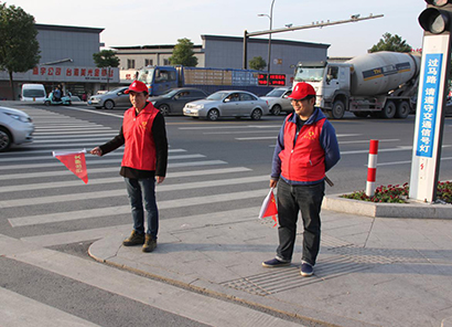 我司黨支部組織“文明過馬路”,交通志愿活動。在出行高峰時期,電力設備7名志愿者頭戴小紅帽,身披紅馬甲,手執(zhí)小紅旗,來到329國道、104國道交叉口,勸阻過往車輛和行人文明出行。